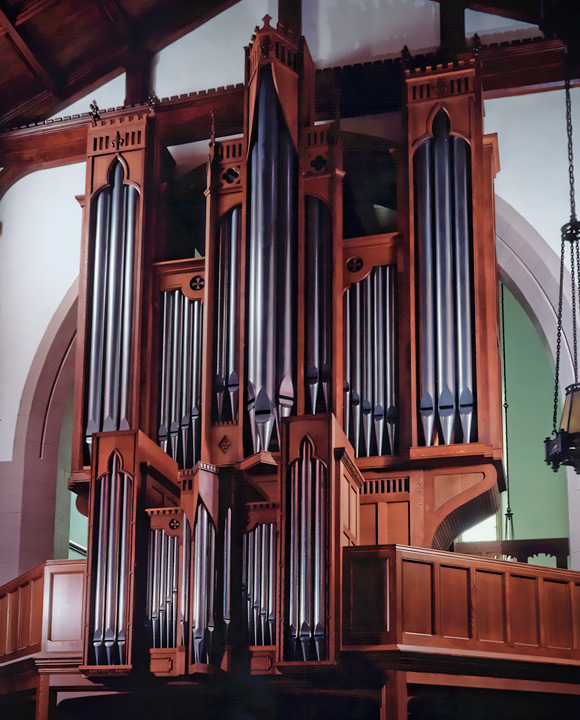 The visual design for Opus 103 was developed to harmonize with the architecture of this the first church designed by Ralph Adams Cram. The design was created within a scale model, which allowed the designers to view the case from all angles, including the tower entrance. The organ speaks down the length of the nave from a new gallery designed by architect William Buckingham, a member of the parish. The sculptural quality and decoration of the quarter-sawn white oak organ reflects, but does not compete with, the lavish carvings in the chancel and in the exquisite Lady Chapel.
